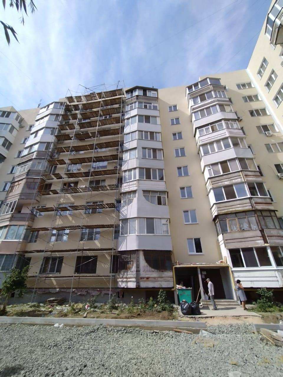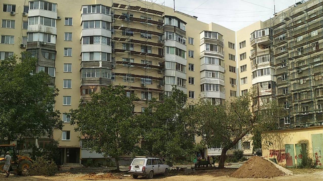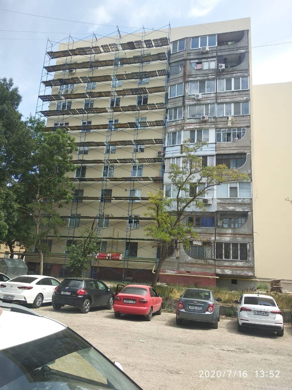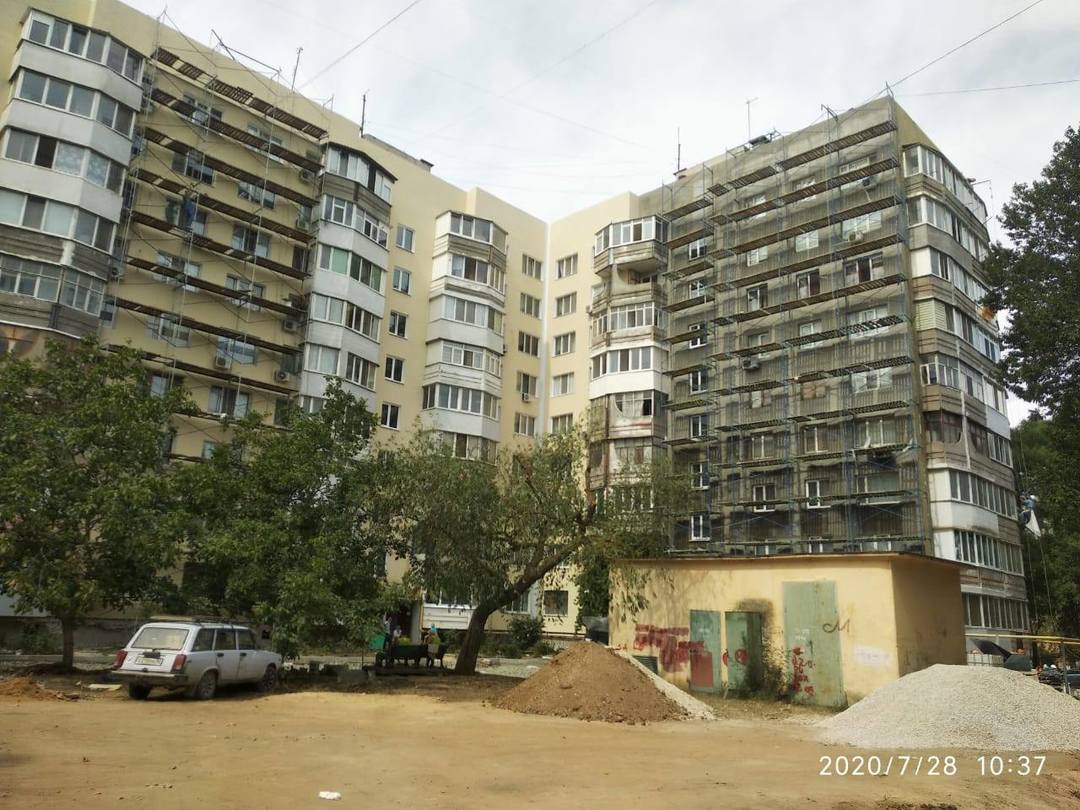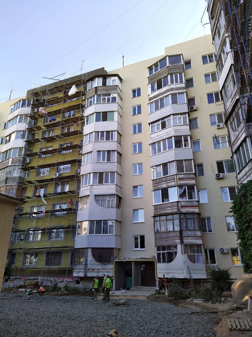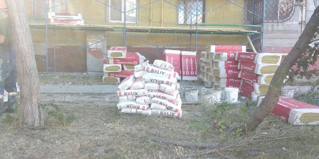 В девятиэтажном доме по ул. Петра Дейкало, 4 в Керчи продолжается ремонт фасада с утеплением.
