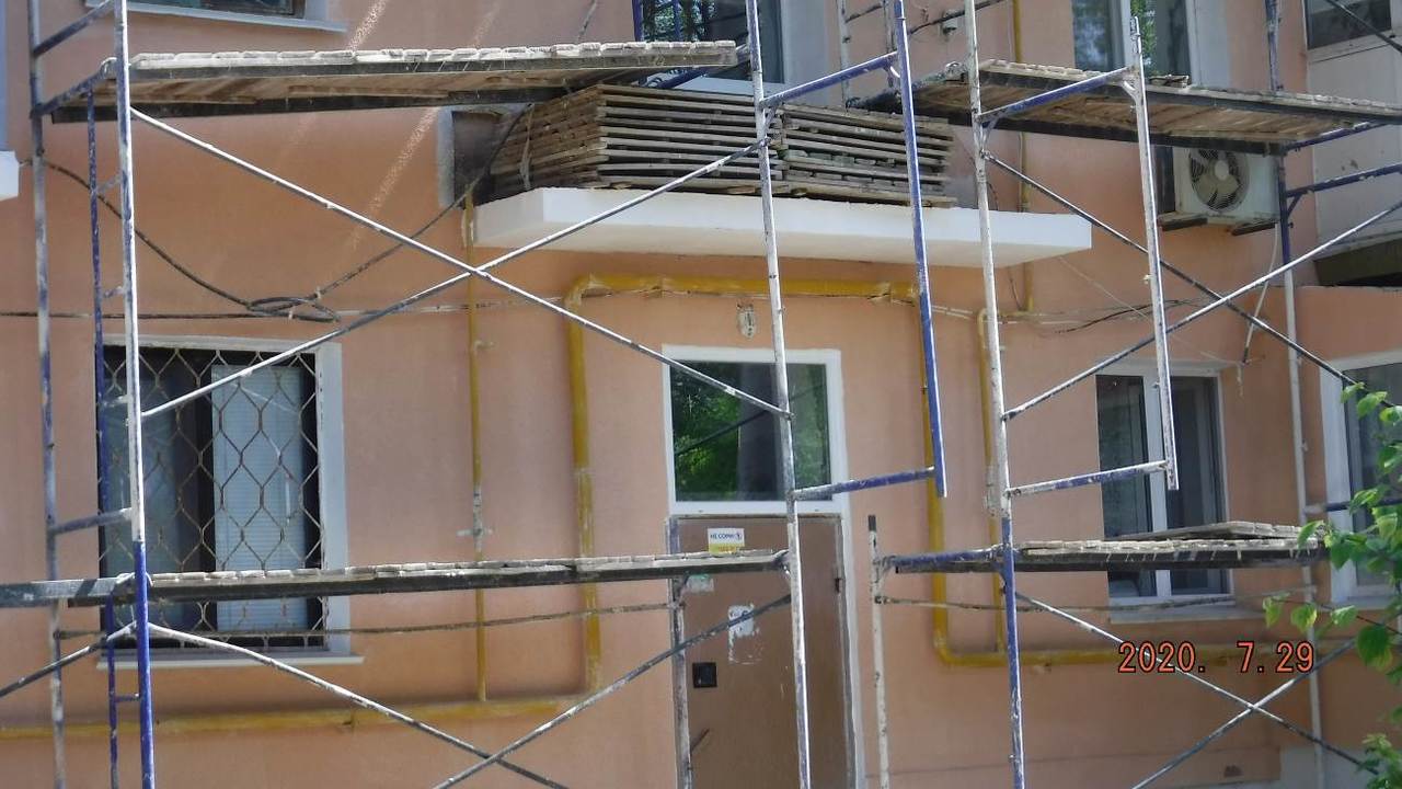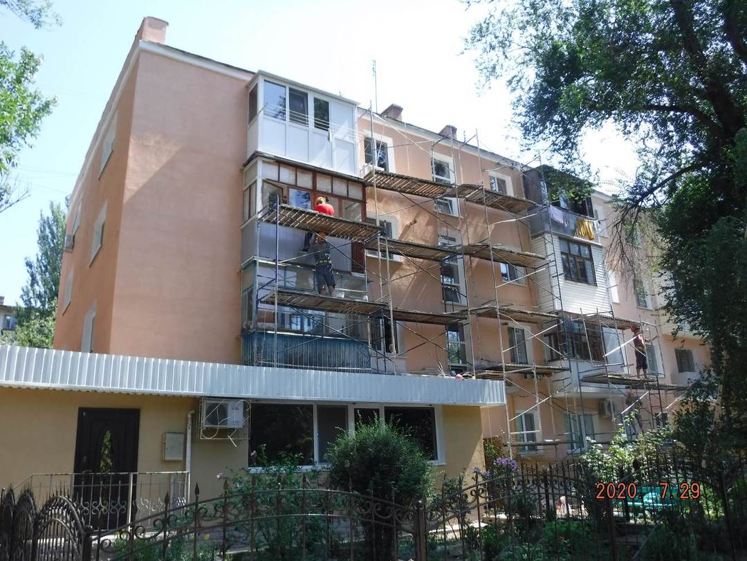 г. Керчь, ул. Нестерова, д.15. Завершаются работы по устройству декоративной штукатурки с последующим окрашиванием.