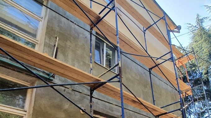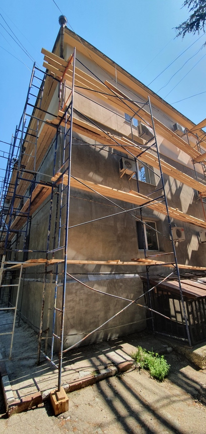 В пгт. Партенит продолжаются работы по капитальному ремонту фасада в многоквартирном доме по адресу: ул. Васильченко, д. 1
